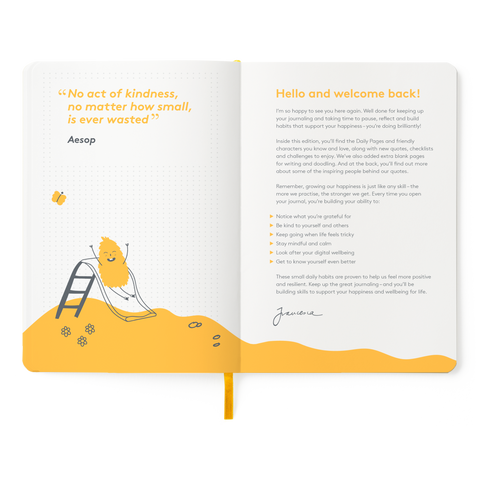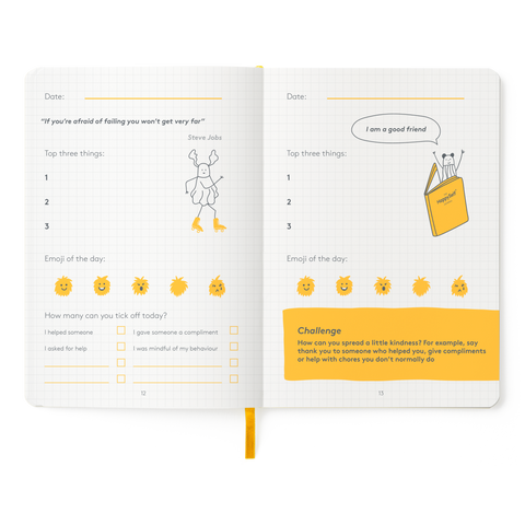 This is a continuation edition of our popular Junior Journal aimed at 6-12 year olds. Inside you will find 12 weeks worth of daily journaling pages with new quotes, affirmations, checklists, and challenges. New illustrations of our much-loved family of characters fill the pages to guide your child through the journaling process.